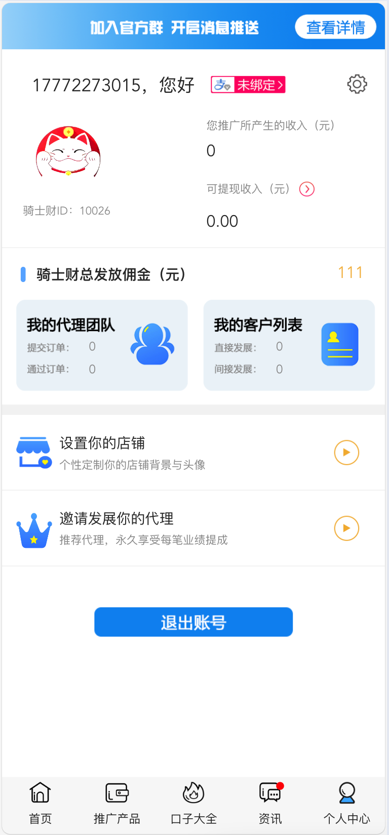 - 独立代理后台:发展下线享受团队佣金补贴